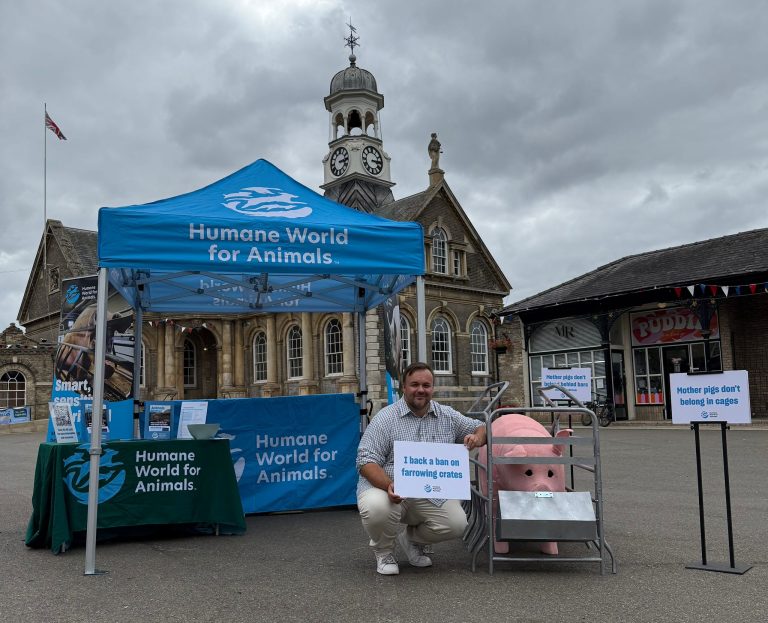 Penny, a full-size animatronic pig came to Norfolk this week as part of the Humane World for Animals UK tour. They were in Thetford on